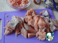 Порежьте рыбу. Я еще добавила в суп горсть креветок. |