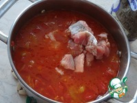 Добавьте томаты, залейте бульоном, доведите до кипения |