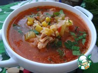 При подаче посыпьте рубленой зеленью. Похлебка получается достаточно густой. Хотите более жидкую консистенцию -увеличьте количество бульона или воды. |