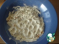 Смешать 2/3 молотого миндаля, муку, разрыхлитель. |