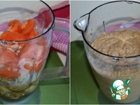 В чашу блендера влить растительное масло. п. с. В оригинале рецепте указано 150 мл масла, в ингредиентах я указала такое же количество. Но на мой вкус этого много, я добавляю 80-100 мл |