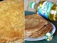 Выпекаем блины. Я пекла среднего размера, получилось где-то 15 штук. На фото немного видно, что блинчики получаются "правильные", пористые. |