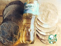 Стаканчики переворачиваем вверх дном и смазываем подсолнечным маслом Олейна. Одеваем на донышко сначала обычный блинчик, затем шоколадный. |