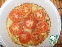Для этого в форму выкладываем блин, на него кружочки наших помидоров |