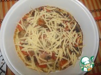 Верхний блин посыпаем только сыром. И отправляем в духовку разогретую до 180 градусов на 15-20 минут. |