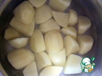 Картофель очистить, разрезать на несколько частей. Залить водой так, чтобы она едва покрывала картофель. Варить до мягкости. |
