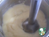 Дать слегка остыть и пюрировать блендером вместе с водой, в которой варился картофель. |
