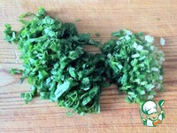 Зелёный лук мелко нарезать. Щавель нарезать тонкими ленточками. |
