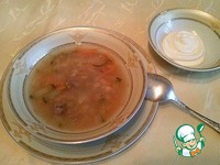 Минут за 10 до окончания добавить лаврушку и молотый перец. Подавать со сметаной и зеленью. |