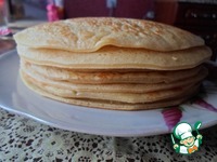 Печем на среднем огне без масла на сухой сковороде пышные панкейки. Я обрезала края, чтобы примерно выравнять каждый панкейк для торта |