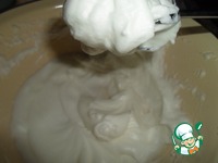 Взбиваем белки до устойчивых пиков, добавляем сахарную пудру и перемешиваем |