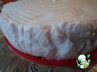 Ставим в форму наш торт и закладываем сверху и в бока наше суфле, отправляем в холодильник на час, за это время оно прекрасно застынет |