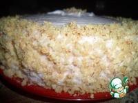 Измельчаем обрезки с панкейков и обсыпаем края торта. |