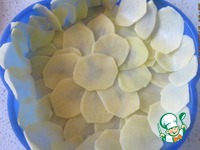 Картофель моем, чистим и нарезаем тонкими кружочками. |