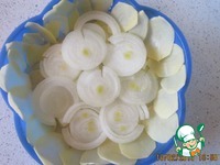 Я использовала силиконовую форму и ее предварительно ничем не смазывала. При использовании любой другой посуды смажьте ее растительным маслом и выложите картофель. |