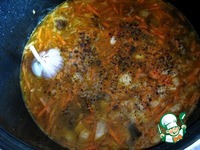 Добавить воду, чеснок. |