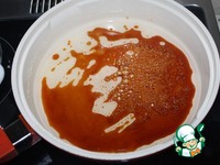 Сдвинуть рульку на край сковороды. Смешать 2 ложки соуса хойсин и 3 ложки соевого соуса. |