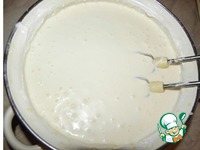 Добавить постепенно в сырную массу по одному яйцу и влить растопленное сливочное масло (только не горячее) все перемешать |