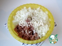 Для фарша: Лук очистить и порезать кубиком, смешать с мясным фаршем, посолить, поперчить по вкусу. |