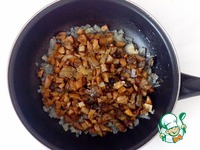 Лук и грибы (если замороженные-разморо зить)мелко нарезать. Лук обжарить 1-2 минуты. |