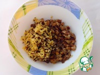 К рису добавить обжаренные грибы с луком, посолить, поперчить, перемешать. Начинку остудить. |