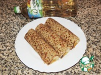 Блины с начинкой свернуть плотными рулетиками (краешки можно обрезать) и убрать в холодильник до подачи. |