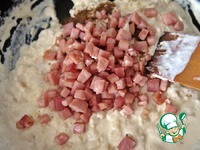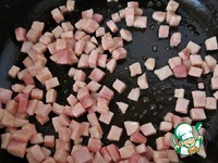 Теперь можно закончить приготовление начинки. Ветчину обжариваем до румяности в 1 ст. л. сливочного масла. |