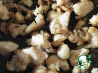 Обжарить мелко нарезанную курятину, посолив ее. Отварить чечевицу. |