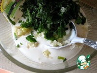 Смешать сметану, соль, чеснок и зелень |