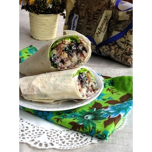 Выкладывать на лаваш салат, мясо птицы, чечевицу |