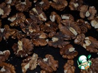 Грецкие орехи почистить и слегка обжарить на сковороде, можно в духовке. Отложить несколько половинок орехов для украшения. |