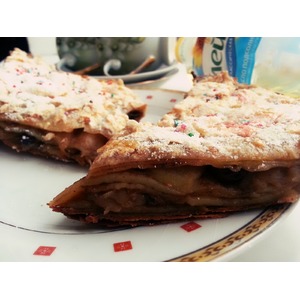 Так собрать ещё 2 слоя, накрыть двумя блинами. Выпекать в разогретой духовке в течении 20 мин. |