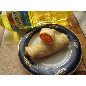 Описание: Я хочу предложить блинчики с очень вкусной и сладкой морковной начинкой. Это бюджетный вариант борьбы с авитаминозом. Кроме того яркий цвет начинки поднимет настроение и поможет справиться с хандрой.