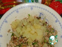 Описание: Начинка для блинов может быть самая разнообразная и ни для кого не секрет, что куриная грудка отлично сочетается с ананасами, поэтому предлагаю сделать начинку для блинов из этих ингредиентов, но подать блюдо будем в виде рулета.