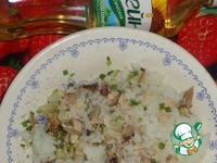 Добавляем отварной рис, соль, черный молотый перец и перемешиваем до однородного состояния. |
