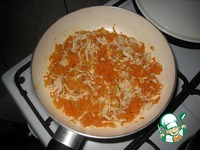 Добавить натертую морковь, обжарить, добавить нарезанную курицу, щепотку соли, влить вино. Тушим 10 минут. Добавить томатную пасту, перемешать, потушить пару минут. Вместо вина можно добавить бульон. |