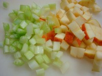 Яблоки и сельдерей порезать маленькими кубиками. |