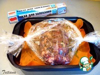 Промаринованное мясо смажьте растительным маслом, немного посолите снаружи, поместите в рукав для запекания (рукав не прокалывайте). |