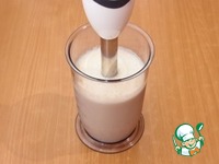Далее я сделала крем для торта. Измельчила бананы и остальные ингредиенты для крема в блендере до однородной массы. Получилось похожим на банановое смузи. По вкусу идеально, хоть так ешь без торта)) |