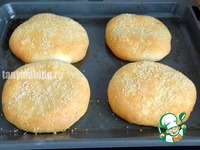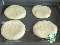 Аналогичное проделать с остальными частями теста, выложить лепешки на смазанный маслом растительным противень; Смазать лепешки растительным маслом, посыпать кунжутом. |