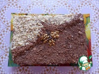 Торт выкладывают из формы, охлаждают, разрезают на два коржа и промазывают кремом. Поверхность и бока торта оформляют кремом и шоколадом, ещё я добавила рубленный грецкий орех. |