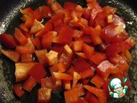 На другой сковороде обжарить болгарский перец, порезанный кубиками, 7 минут. |