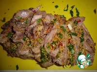 Готовую рульку немного охлаждаем, снимаем с кости. Пласт слегка надрезаем вдоль, делаем насечки, стараясь не повредить шкурку. Тщательно промазываем горчичной смесью каждый "уголок"))) |