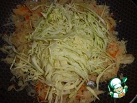 Добавляем лук и свежую капусту. Тушим еще минут 20. |