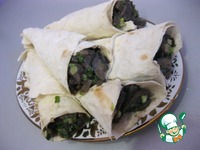 Описание: Удивительно простой рецепт лаваша с грибами придется по душе всем любителям быстрых, легких, но при этом сытных закусок. Хорошо подходит как в качестве закуски к гарнирам, так и как основное блюдо!