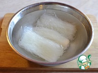 Положить фунчозу в прохладную воду на 30-40 минут. |