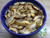 В первую очередь замочим грибы Шиитаке в холодной кипяченной воде на 45 мин (по инструкции). Грибы продаются в супермаркетах в отделе "Все для суши". |