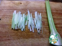 Дальше так же нарезаем сельдерей. Кто не хочет или не имеет возможности взвесить- это два стебля как на фото. |