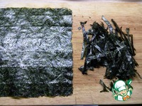 Нори так же нарезаем соломкой. Два листа как на фото |