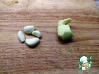 Чеснок и имбирь очищаем. |
